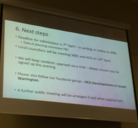 Posting on the renamed HCA Rethink for South Warrington Facebook page overnight, WBC and local parish councillors have issued a call to action for next Wednesday’s Development Management (commonly referred to as Planning!) Committee meeting. It’s time to make a stand and show the council’s Development Management Committee how strongly […]